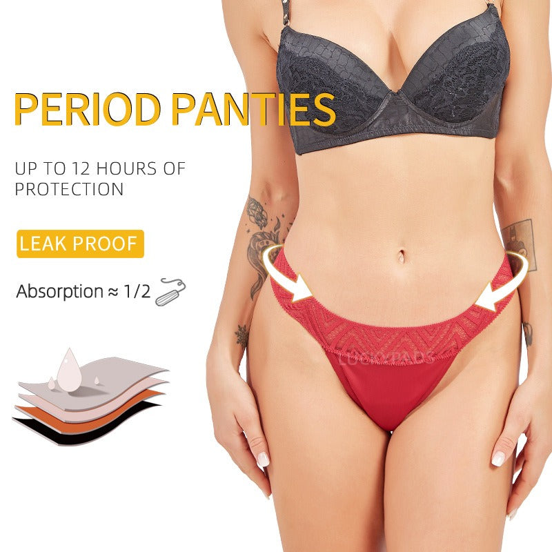 Reusable period underwear thong that absorbs your flow and protects from leaks, while keeping you feeling fresh. Get 50% off the second item! Discounts are applied automatically at checkout.